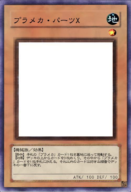 | 【条件】手札の「プラメカ」カード1枚を墓地に送って発動する。 【効果】デッキの上からカードを3枚めくり、その中から「プラメカ」カードを1枚手札に加える。それ以外のカードは好きな順番でデッキの一番下に戻す。 | |||