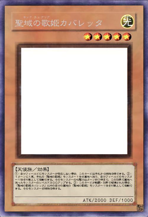| ①:自分フィールドにモンスターが存在しない場合、このカードは手札から特殊召喚できる。②:1ターンに1度、手札の「聖域の歌姫」モンスター1体を墓地へ送り、自分フィールドのモンスター1体を対象として発動できる。そのモンスターの攻撃力はターン終了時まで、この効果で墓地へ送ったモンスターのレベル×300アップする。③:このカードが戦闘・効果で破壊された場合、「聖域の歌姫カバレッタ」以外の自分の墓地の「聖域の歌姫」モンスター1体を対象として発動できる。そのモンスターを特殊召喚する。 | |||