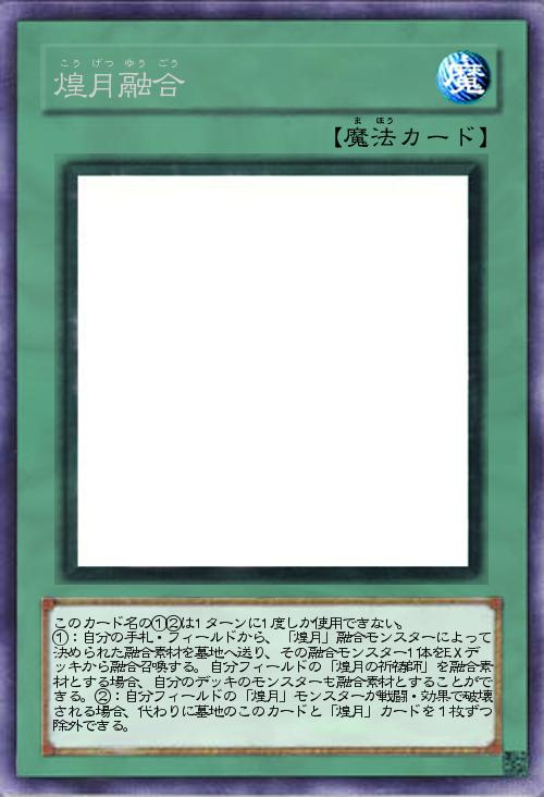 「煌月カテゴリの融合モンスターを召喚するために必要なカード。中身は、「古代の機械融合」と「ネオス・フュージョン」をモチーフにした効果。」(2020-05-15 00:01)