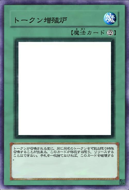 | トークンが召喚される度に、同じ同名のトークンを可能な限り特殊召喚することが出来る。このカードが存在する限り、リリースすることはできない。手札を一枚捨てなければ、このカードを破壊する。 | |||