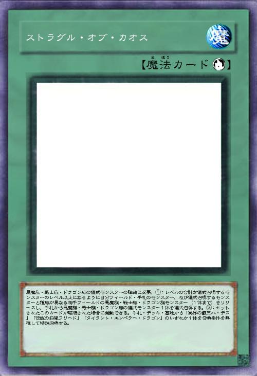 | 悪魔族・戦士族・ドラゴン族の儀式モンスターの降臨に必要。①:レベルの合計が儀式召喚するモンスターのレベル以上になるように自分フィールド・手札のモンスター、及び儀式召喚するモンスターと種族が異なる相手フィールドの悪魔族・戦士族・ドラゴン族モンスター(1体まで)をリリースし、手札から悪魔族・戦士族・ドラゴン族の儀式モンスター1体を儀式召喚する。②:セットされたこのカードが破壊された場合に発動できる。手札・デッキ・墓地から「冥界の覇王ハ・デス」「伝説の将軍フリード」「タイラント・エンペラー・ドラゴン」のいずれか1体を召喚条件を無視して特殊召喚する。 | |||