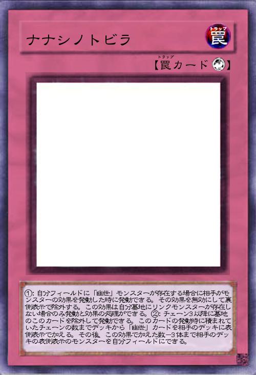 | ①:自分フィールドに「幽世」モンスターが存在する場合に相手がモンスターの効果を発動した時に発動できる。その効果を無効にして裏側表示で除外する。この効果は自分墓地にリンクモンスターが存在しない場合のみ発動と効果の処理ができる。②:チェーン3以降に墓地のこのカードを除外して発動できる。このカードの発動時に積まれていたチェーンの数までデッキから「幽世」カードを相手のデッキに表側表示で加える。その後、この効果で加えた数-3体まで相手のデッキの表側表示のモンスターを自分フィールドにできる。 | |||