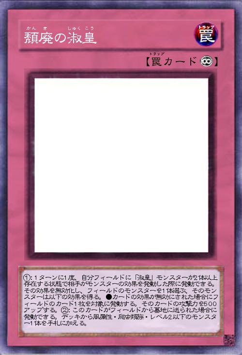 『①:1ターンに1度、自分フィールドに「淑皇」モンスターが2体以上存在し、相手がカードの効果を発動した時、自分フィールドのモンスター1体を対象として発動できる。その効果を無効にする。その後、対象のモンスターは、攻撃力が500アップし、以下の効果を得る。●カードの効果が無効化された場合、フィールドのモンスター1体を対象として発動する。そのモンスターの攻撃力を500アップする。』