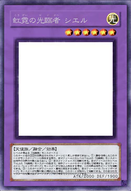 | レベルが異なる「光臨者」モンスター×2 このカード名の②③の効果はそれぞれ1ターンに1度しか使用できない。①:融合召喚したこのカードがモンスターゾーンに存在する限り、自分フィールドのレベル7以上の「光臨者」モンスターは相手の効果の対象にならない。②:自分メインフェイズに発動できる。自分フィールドのレベル7以上の「光臨者」モンスターの数まで、相手フィールドのカードを選んで破壊する。自分フィールドに「レインボーオーブ」モンスターが2体以上存在する場合、この効果は相手ターンでも発動できる。③:このカードがフィールド・墓地に存在する状態で、自分フィールドの「レインボーオーブ」モンスターが攻撃対象に選択された場合、このカードを除外して発動できる。その自分のモンスターの攻撃力はダメージステップ終了時まで2000アップする。 | |||