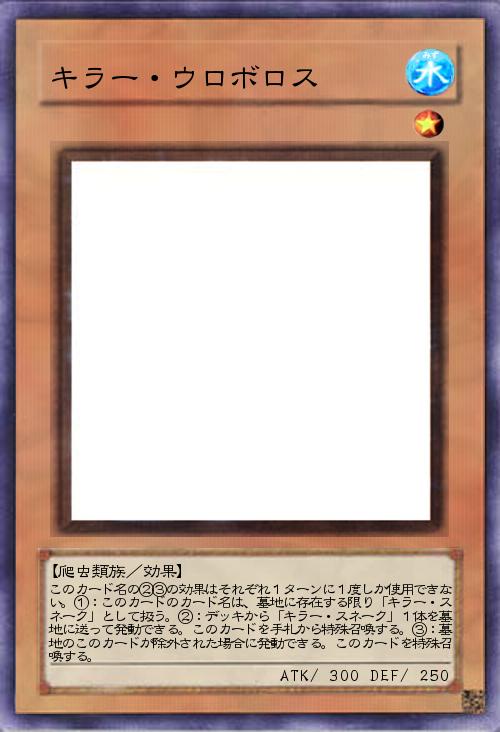 | このカード名の②③の効果はそれぞれ1ターンに1度しか使用できない。①:このカードのカード名は、墓地に存在する限り「キラー・スネーク」として扱う。②:デッキから「キラー・スネーク」1体を墓地に送って発動できる。このカードを手札から特殊召喚する。③:墓地のこのカードが除外された場合に発動できる。このカードを特殊召喚する。 | |||