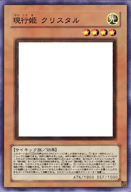 | このカード名の①③の効果はそれぞれ1ターンに1度しか使用できない。①:自分・相手のメインフェイズに発動できる。相手に握手を申し込む。相手が握手に応じた場合お互いのプレイヤーのデッキの上から3枚を墓地に送る。相手が握手に応じなかった場合、自分はデッキからレベル4以下の「現行姫」モンスター1体を特殊召喚する。②:自分が「現行姫」モンスターの効果で相手と握手する度、このカードの上に握手カウンターを1個置く。③:このカードの上の握手カウンターを2個取り除いて発動できる。自分のデッキから「現行姫」カード1枚を手札に加える。④:このカードの戦闘によって相手にダメージを与えた場合に自分フィールドの握手カウンターを置くことができるカード1枚を対象にして発動できる。そのカードの上に握手カウンターを1個置く。 | |||