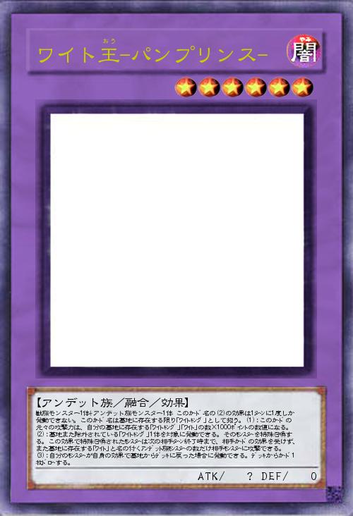 | 獣族モンスター1体+アンデット族モンスター1体 このカード名の(2)の効果は1ターンに1度しか発動できない。このカード名は墓地に存在する限り「ワイトキング」として扱う。(1):このカードの元々の攻撃力は、自分の墓地に存在する「ワイトキング」「ワイト」の数×1000ポイントの数値になる。 (2):墓地また除外されている「ワイトキング」1体を対象に発動できる。そのモンスターを特殊召喚する。この効果で特殊召喚されたモンスターは次の相手ターン終了時まで、相手カードの効果を受けず、また墓地に存在する「ワイト」と名の付くアンデット族モンスターの数だけ相手モンスターに攻撃できる。 (3):自分のモンスターが自身の効果で墓地からデッキに戻った場合に発動できる。デッキからカード1枚ドローする。 | |||