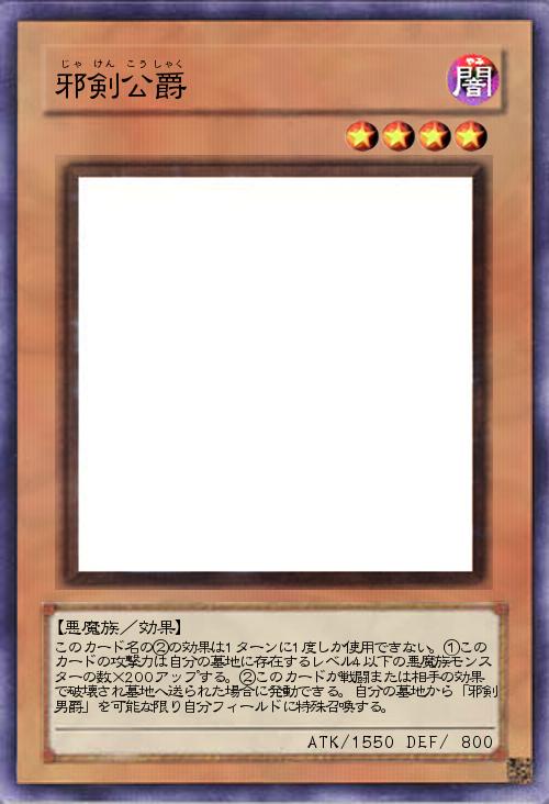 | このカード名の②の効果は1ターンに1度しか使用できない。①このカードの攻撃力は自分の墓地に存在するレベル4以下の悪魔族モンスターの数×200アップする。②このカードが戦闘または相手の効果で破壊され墓地へ送られた場合に発動できる。自分の墓地から「邪剣男爵」を可能な限り自分フィールドに特殊召喚する。 | |||