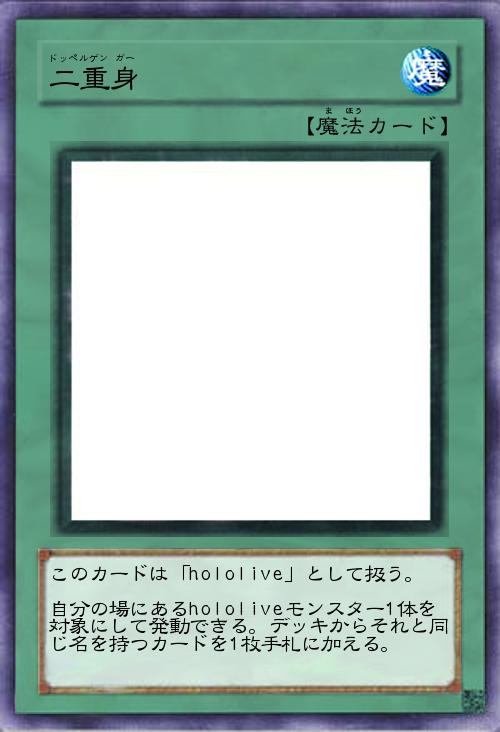 | このカードは「hololive」として扱う。 自分の場にあるhololiveモンスター1体を対象にして発動できる。デッキからそれと同じ名を持つカードを1枚手札に加える。 | |||