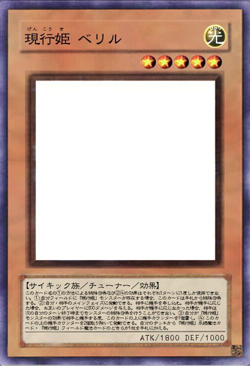 | このカード名の①の方法による特殊召喚及び②④の効果はそれぞれ1ターンに1度しか使用できない。①:自分フィールドに「現行姫」モンスターが存在する場合、このカードは手札から特殊召喚する。②:自分・相手のメインフェイズに発動できる。相手に握手を申し込む。相手が握手に応じた場合、お互いのプレイヤーに500ダメージを与える。相手が握手に応じなかった場合、相手は次の自分のターン終了時までモンスターの特殊召喚を行うことができない。③:自分が「現行姫」モンスターの効果で相手と握手する度、このカードの上に握手カウンターを1個置く。④:このカードの上の握手カウンターを2個取り除いて発動できる。自分のデッキから「現行姫」永続魔法カード・「現行姫」フィールド魔法カードのどちらか1枚を手札に加える。 | |||