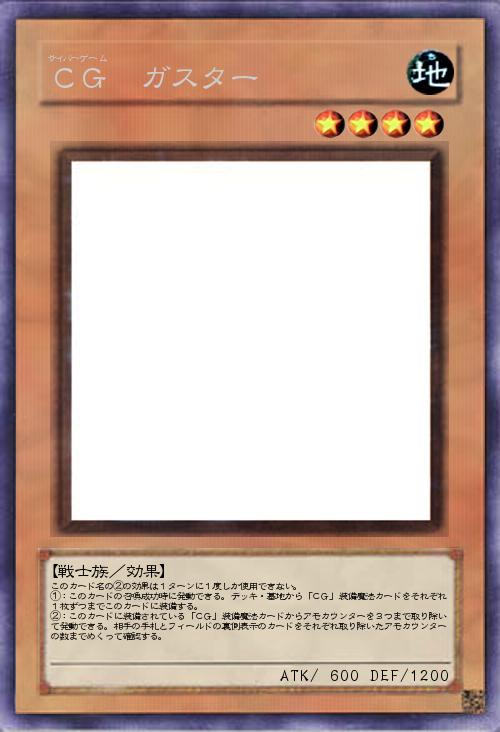 | このカード名の②の効果は1ターンに1度しか使用できない。 ①:このカードの召喚成功時に発動できる。デッキ・墓地から「CG」装備魔法カードをそれぞれ1枚ずつまでこのカードに装備する。 ②:このカードに装備されている「CG」装備魔法カードからアモカウンターを3つまで取り除いて発動できる。相手の手札とフィールドの裏側表示のカードをそれぞれ取り除いたアモカウンターの数までめくって確認する。 | |||