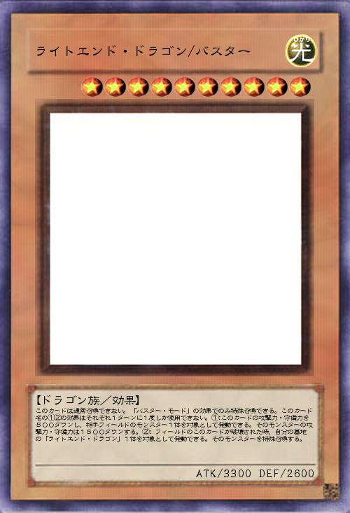 | このカードは通常召喚できない。「バスター・モード」の効果でのみ特殊召喚できる。このカード名の①②の効果はそれぞれ1ターンに1度しか使用できない。①:このカードの攻撃力・守備力を500ダウンし、相手フィールドのモンスター1体を対象として発動できる。そのモンスターの攻撃力・守備力は1500ダウンする。②: フィールドのこのカードが破壊された時、自分の墓地の「ライトエンド・ドラゴン」1体を対象として発動できる。そのモンスターを特殊召喚する。 | |||