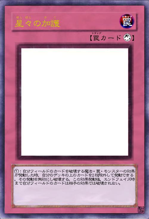 | ①:自分フィールドのカードを破壊する魔法・罠・モンスターの効果が発動した時、自分のデッキの上のカードを2枚除外して発動できる。その発動を無効にし破壊する。この効果発動後、エンドフェイズ時まで自分フィールドのカードは相手の効果では破壊されない。 | |||