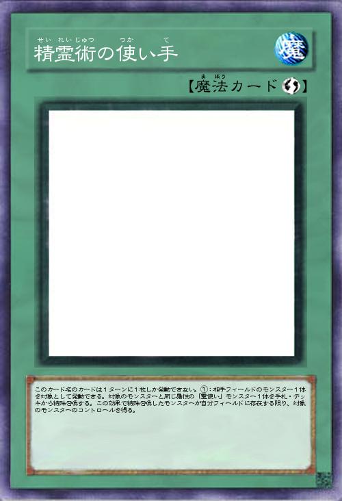 | このカード名のカードは1ターンに1枚しか発動できない。①:相手フィールドのモンスター1体を対象として発動できる。対象のモンスターと同じ属性の「霊使い」モンスター1体を手札・デッキから特殊召喚する。この効果で特殊召喚したモンスターが自分フィールドに存在する限り、対象のモンスターのコントロールを得る。 | |||