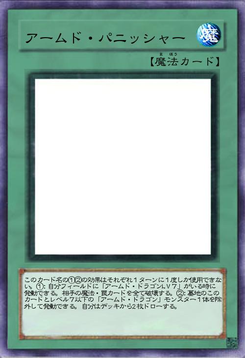 「アームド・ドラゴンLV7の必殺技をカードにしました。アームド・ドラゴンLV7がいる時に魔法・罠カードを破壊でき、墓地からレベル7以下のアームド・ドラゴンと一緒に除外することで2枚ドローできます。」(2020-06-19 23:10)