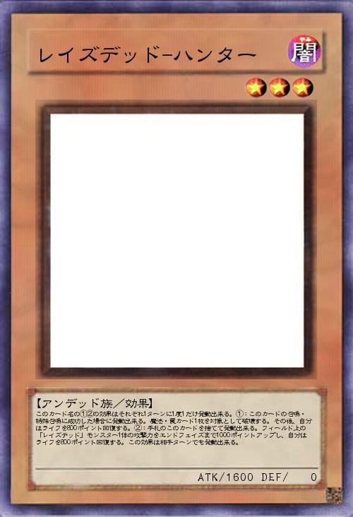 | このカード名の①②の効果はそれぞれ1ターンに1度1だけ発動出来る。①:このカードの召喚・特殊召喚に成功した場合に発動出来る。魔法・罠カード1枚を対象として破壊する。その後、自分はライフを800ポイント回復する。②:手札のこのカードを捨てて発動出来る。フィールド上の「レイズデッド」モンスター1体の攻撃力をエンドフェイズまで1000ポイントアップし、自分はライフを800ポイント回復する。この効果は相手ターンでも発動出来る。 | |||