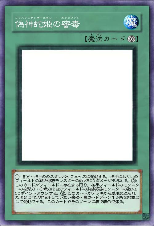 | ①:自分・相手ののスタンバイフェイズに発動する。相手にお互いのフィールドの爬虫類族モンスターの数×500ダメージを与える。②:このカードがフィールドに存在する限り、相手フィールドのモンスターの攻撃力・守備力は自分フィールドの爬虫類族モンスターの数×500ポイントダウンする。③:このカードがデッキから墓地に送られた場合に自分が使用していない魔法・罠カードゾーン1ヵ所を対象にして発動できる。このカードをそのゾーンに表側表示で張る。 | |||