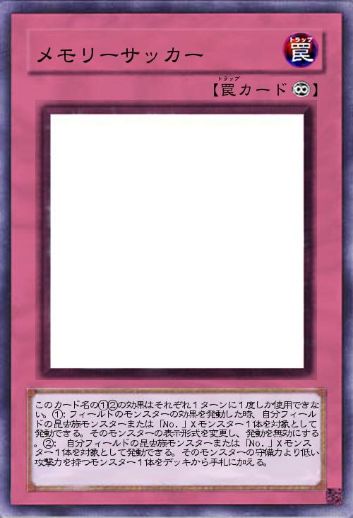 | このカード名の①②の効果はそれぞれ1ターンに1度しか使用できない。①:フィールドのモンスターの効果を発動した時、自分フィールドの昆虫族モンスターまたは「No.」Xモンスター1体を対象として発動できる。そのモンスターの表示形式を変更し、発動を無効にする。②: 自分フィールドの昆虫族モンスターまたは「No.」Xモンスター1体を対象として発動できる。そのモンスターの守備力より低い攻撃力を持つモンスター1体をデッキから手札に加える。 | |||