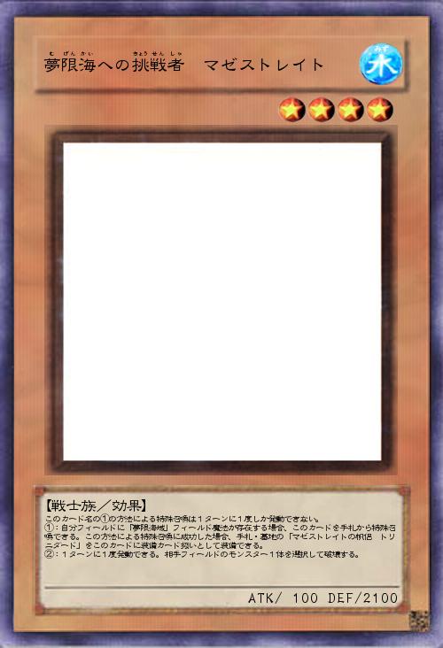| このカード名の①の方法による特殊召喚は1ターンに1度しか発動できない。 ①:自分フィールドに「夢限海域」フィールド魔法が存在する場合、このカードを手札から特殊召喚できる。この方法による特殊召喚に成功した場合、手札・墓地の「マゼストレイトの帆侶 トリニダード」をこのカードに装備カード扱いとして装備できる。 ②:1ターンに1度発動できる。相手フィールドのモンスター1体を選択して破壊する。 | |||