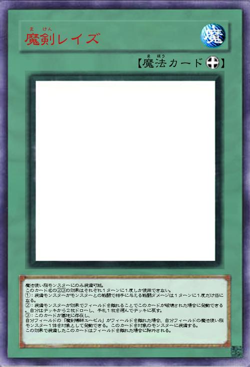 | 魔法使い族モンスターにのみ装備可能。 このカード名の②③の効果はそれぞれ1ターンに1度しか使用できない。 ①:装備モンスターがモンスターとの戦闘で相手に与える戦闘ダメージは1ターンに1度だけ倍になる。 ②:装備モンスターが効果でフィールドを離れることでこのカードが破壊された場合に発動できる。自分はデッキから2枚ドローし、手札1枚を選んでデッキに戻す。 ③:このカードが墓地に存在し、 自分フィールドの「魔剣導師ユーゼル」がフィールドを離れた場合、自分フィールドの魔法使い族モンスター1体を対象として発動できる。このカードを対象のモンスターに装備する。 この効果で装備したこのカードはフィールドを離れた場合に除外される。 | |||