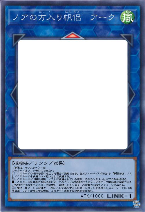 | 「夢限海」モンスター×1体 このカードはリンク素材にできない。 ①:このカードの特殊召喚に成功した場合に発動できる。自分フィールドに存在する「夢限海祖 ノア」にこのカードを装備カード扱いとして装備する。 ②:このカードが「夢限海祖 ノア」に装備されている限り、そのモンスターは以下の効果を得る。 ●:このカードは相手の効果を受けず、このカードが戦闘を行うダメージステップ開始時に発動できる。戦闘を行う相手モンスターを破壊し、破壊したモンスターの攻撃力分相手にダメージを与える。 ③:魔法・罠ゾーンに装備カード扱いとして存在するこのカードのリンク先のモンスターゾーンに「夢限海祖 ノア」が存在する場合、このカードは相手の効果を受けない。 | |||
