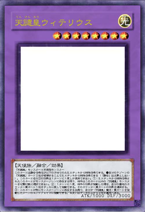 | 「天譴皇」モンスター+天使族モンスター このカードは融合召喚及び以下の方法でのみEXデッキから特殊召喚できる。●自分のPゾーンの「天譴皇」カード2枚を破壊することでEXデッキから特殊召喚できる(「融合」は必要としない)。このカード名の③の効果は1ターンに1度しか使用できない。①:EXデッキから特殊召喚されたこのカードがモンスターゾーンに存在する限り、相手はこのカード以外の「天譴皇」モンスターを攻撃対象に選択できない。②:1ターンに1度、相手の効果が発動した場合、自分の墓地のカウンター罠カード1枚をデッキに戻して発動できる。そのカウンター罠カードの効果を適用する。③:このカードが既にモンスターゾーンに存在する状態で、自分が「天譴皇」魔法・罠カードを発動したターンのエンドフェイズに発動できる。お互いはデッキの上から3枚を墓地へ送る。 | |||