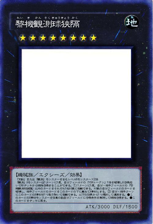 | 「天凱」または「観測」モンスターを含むレベル8モンスター×2体 「観測」Xモンスターは1ターンに1度、自分フィールドの「IONトークン」1体を破壊しX召喚扱いでEXデッキから特殊召喚することができる。①:1ターンに1度、自分・相手フィールドの「黎機観測球狭隔」以外のカードをそれぞれ1枚対象に発動できる。対象の自分フィールドのカードを破壊し、相手フィールドのカードをこのカードの下に重ねてX素材とする。②:自分・相手ターンにこのカードのX素材を1つ取り除いて発動できる。以下の効果から1つ選択して適用する。●このカードのX素材モンスターを任意の数自分フィールドに召喚条件を無視して特殊召喚する。●このカードをデッキに戻す。 | |||
