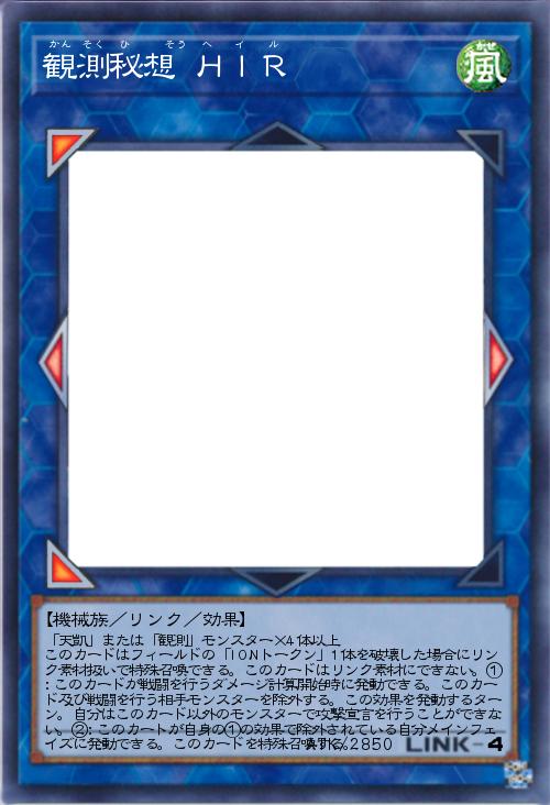 | 「天凱」または「観測」モンスター×4体以上 このカードはフィールドの「IONトークン」1体を破壊した場合にリンク素材扱いで特殊召喚できる。このカードはリンク素材にできない。①:このカードが戦闘を行うダメージ計算開始時に発動できる。このカード及び戦闘を行う相手モンスターを除外する。この効果を発動するターン。自分はこのカード以外のモンスターで攻撃宣言を行うことができない。②:このカートが自身の①の効果で除外されている自分メインフェイズに発動できる。このカードを特殊召喚する。 | |||