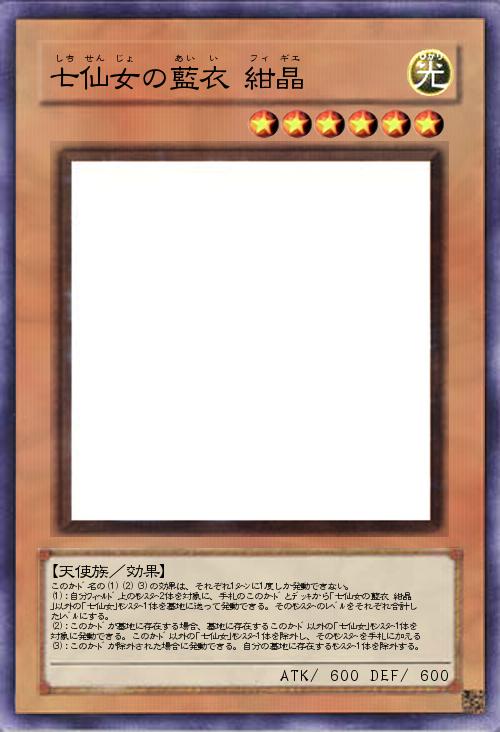 | このカード名の(1)(2)(3)の効果は、それぞれ1ターンに1度しか発動できない。 (1):自分フィールド上のモンスター2体を対象に、手札のこのカードとデッキから「七仙女の藍衣 紺晶」以外の「七仙女」モンスター1体を墓地に送って発動できる。そのモンスターのレベルをそれぞれ合計したレベルにする。 (2):このカードが墓地に存在する場合、墓地に存在するこのカード以外の「七仙女」モンスター1体を対象に発動できる。このカード以外の「七仙女」モンスター1体を除外し、そのモンスターを手札に加える (3):このカードが除外された場合に発動できる。自分の墓地に存在するモンスター1体を除外する。 | |||