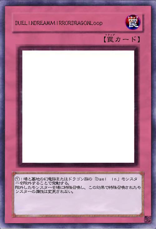 | ①:場と墓地の幻竜族またはドラゴン族の「Duel In」モンスターを除外することで発動する。 除外したモンスターを場に特殊召喚し、この効果で特殊召喚されたモンスターの属性は変更されない。 | |||