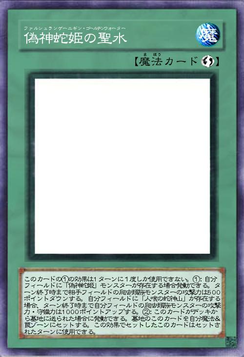 | このカードの①の効果は1ターンに1度しか使用できない。①:自分フィールドに「偽神蛇姫」モンスターが存在する場合発動できる。ターン終了時まで相手フィールドの爬虫類族モンスターの攻撃力は500ポイントダウンする。自分フィールドに「人喰の蛇神山」が存在する場合、ターン終了時まで自分フィールドの爬虫類族モンスターの攻撃力・守備力は1000ポイントアップする。②:このカードがデッキから墓地に送られた場合に発動できる。墓地のこのカードを自分魔法&罠ゾーンにセットする。この効果でセットしたこのカードはセットされたターンに使用できる。 | |||