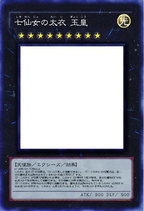 | レベル9モンスター×2体以上 このカード名の(3)の効果は、1ターンに1度しか発動できない。 (1):このカードの攻撃力は、自分の墓地または除外されているモンスターの数×500アップする。 (2):このカードが効果で破壊される場合、このカードのX素材1つ取り除き、自分の墓地の「七仙女」モンスター1体を除外して発動できる。その発動と効果を無効にし、除外する。 (3):このカードが除外された場合に発動できる。墓地または除外されているこのカード以外の「七仙女」モンスターの中から、このカードと同じランクになるように、そのモンスターを手札に加える。 | |||