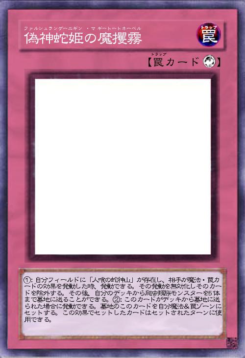 | ①:自分フィールドに「人喰の蛇神山」が存在し、相手が魔法・罠カードの効果を発動した時、発動できる。その発動を無効化しそのカードを除外する。その後、自分のデッキから爬虫類族モンスターを5体まで墓地に送ることができる。②:このカードがデッキから墓地に送られた場合に発動できる。墓地のこのカードを自分魔法&罠ゾーンにセットする。この効果でセットしたカードはセットされたターンに使用できる。 | |||