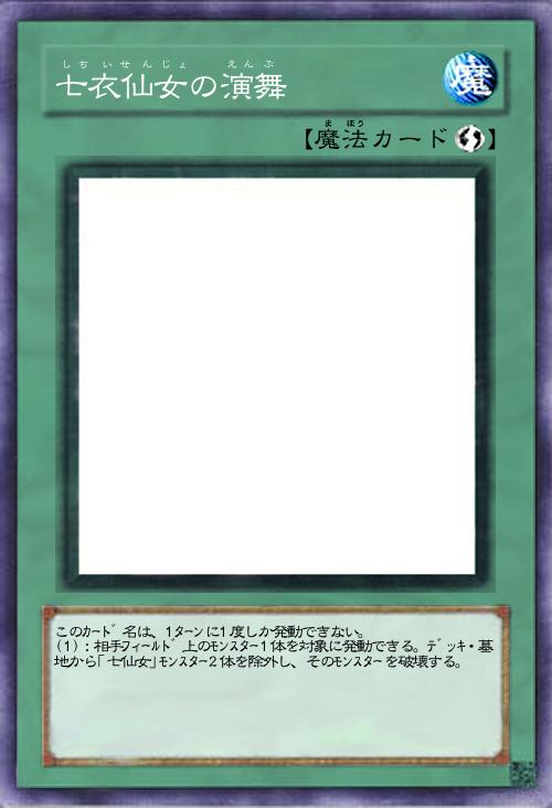 | このカード名は、1ターンに1度しか発動できない。 (1):相手フィールド上のモンスター1体を対象に発動できる。デッキ・墓地から「七仙女」モンスター2体を除外し、そのモンスターを破壊する。 | |||