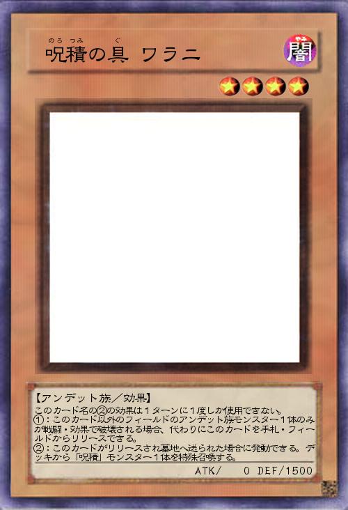 アンデット族の戦闘・効果破壊を代わりに受け止め、デッキから他の呪積の具をリクルートしてこれる。
