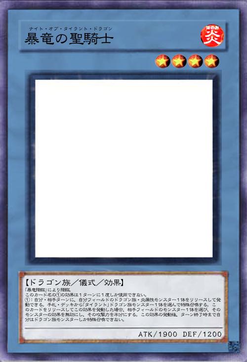 | 「暴竜降臨」により降臨。 このカード名の①の効果は1ターンに1度しか使用できない。 ①:自分・相手ターンに、自分フィールドのドラゴン族・炎属性モンスター1体をリリースして発動できる。手札・デッキから「タイラント」ドラゴン族モンスター1体を選んで特殊召喚する。このカードをリリースしてこの効果を発動した場合、相手フィールドのモンスター1体を選び、そのモンスターの効果を無効にし、その攻撃力を半分にする。この効果の発動後、ターン終了時まで自分はドラゴン族モンスターしか特殊召喚できない。 | |||