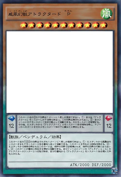 | このカード名の②のP効果は1ターンに1度しか使用できない。①:自分は「アトラクタード」モンスターしかP召喚できない。この効果は無効化されない。②:自分フィールドのPモンスター1体を対象として発動できる。そのモンスターを破壊する。その後、EXデッキから「アトラクタード」Xモンスター1体を特殊召喚し、PゾーンのこのカードをそのXモンスター1体の下に重ねてX素材とする。 | |||