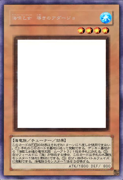 | このカードの①③の効果はそれぞれ1ターンに1度しか使用できない。①:手札のこのカードを墓地に送って発動できる。デッキ・墓地から「海歌乙女達の竜唄王国 ムーアトラ」1枚を手札に加える。②:自分フィールドに「海」が存在する場合、このカードは手札の水属性モンスター1体もS素材にできる。③:自分・相手のバトルフェイズに発動できる。海竜族Sモンスター1体をS召喚する。 | |||