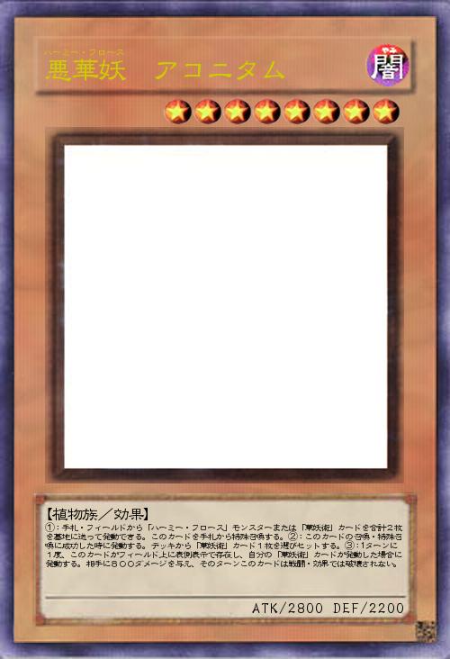 「新規カテゴリ「悪華妖」の1枚目となります。例によって不定期に気が向いたら投稿していきます。テーマのモチーフは「毒を持つ植物」で、サポートの「華妖術」カードやバーン効果などを駆使するテーマとなる予定です。