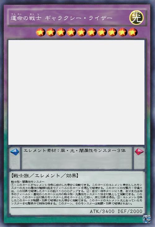 「素材指定は厳しめですが、レベルの指定がないのが優秀。闇戦士デッキでは出しやすいですが、属性がばらけていた方が良いので全属性を使って出そうとなると、多分展開ソリティアデッキでの運用に留まりそうですかね。もし属性指定が逆の炎・水・地の組み合わせだったら、ゼンマイデッキでも採用候補になっていた1枚ですが…。