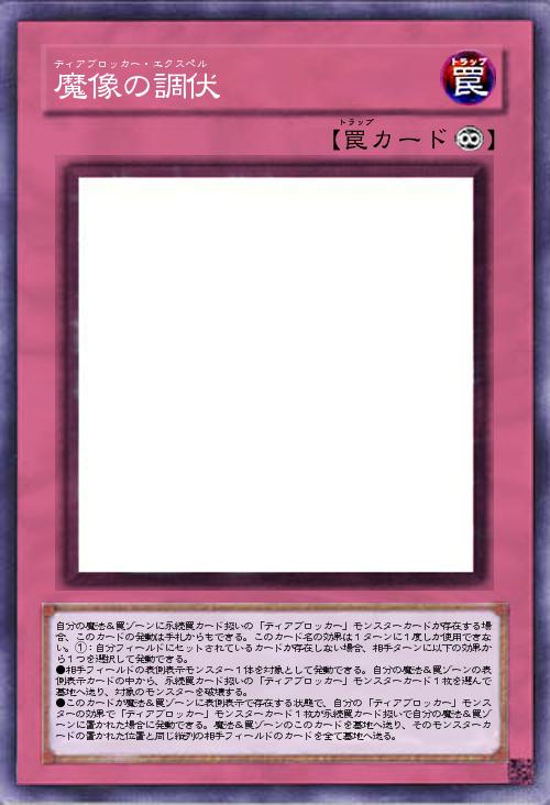 セットカードがない場合に、永続罠になったディアブロッカーを墓地へ送って相手モンスターを破壊したり、ディアブロッカーモンスターによってディアブロッカーが永続罠になったら自身を墓地へ送ってそれと同じ縦列の相手カードを墓地へ送ったりができるようです。永続罠カード扱いの~という表現が必要なためにテキスト量がふくれがあっている感じですね……