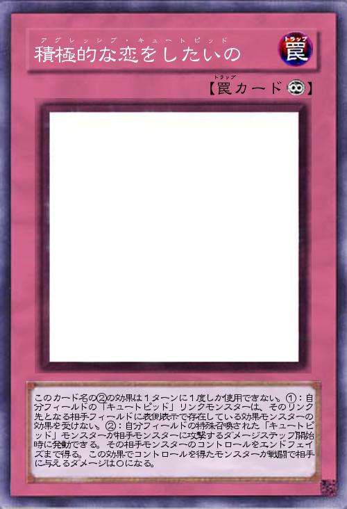 また特殊召喚されたキュートピッドが攻撃する場合ダメージステップ開始時にコントロールをターン中奪取。もはやリンク先でなくてもよくなったか……罠で遅いとはいえ、このカードは出しやすいステータスのリトルガールでサーチできるので、何かと混ぜ合わせたら色々悪いことをしそうです。」(2020-08-08 09:55)