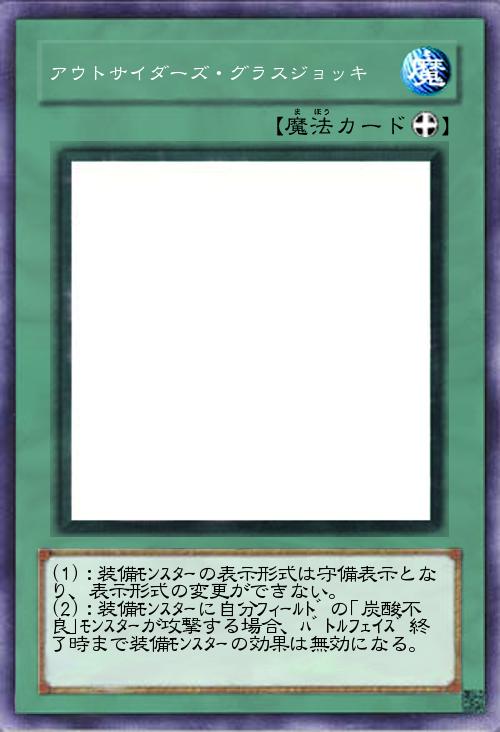 | (1):装備モンスターの表示形式は守備表示となり、表示形式の変更ができない。 (2):装備モンスターに自分フィールドの「炭酸不良」モンスターが攻撃する場合、バトルフェイズ終了時まで装備モンスターの効果は無効になる。 | |||