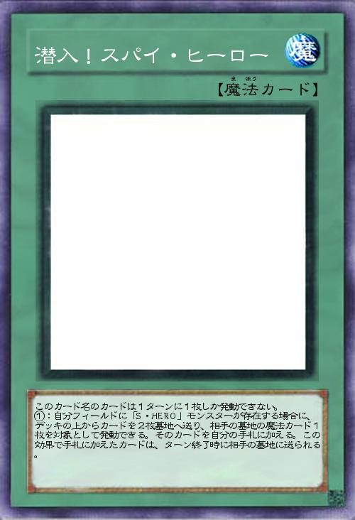 「アニメ遊戯王GXで登場した《潜入!スパイ・ヒーロー》のリメイクカードかつ、S・HERO(スパイヒーロー)サポートカードです。(エラッタに近いかも)
