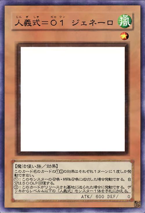 | このカード名のカードの①②の効果はそれぞれ1ターンに1度しか発動できない。 ①:このモンスターの召喚・特殊召喚に成功した場合発動できる。自分は500LP回復する。 ②:このカードがリリースされ墓地に送られた場合に発動できる。デッキからレベル4以下の「人義式」モンスター1体を手札に加える。 | |||
