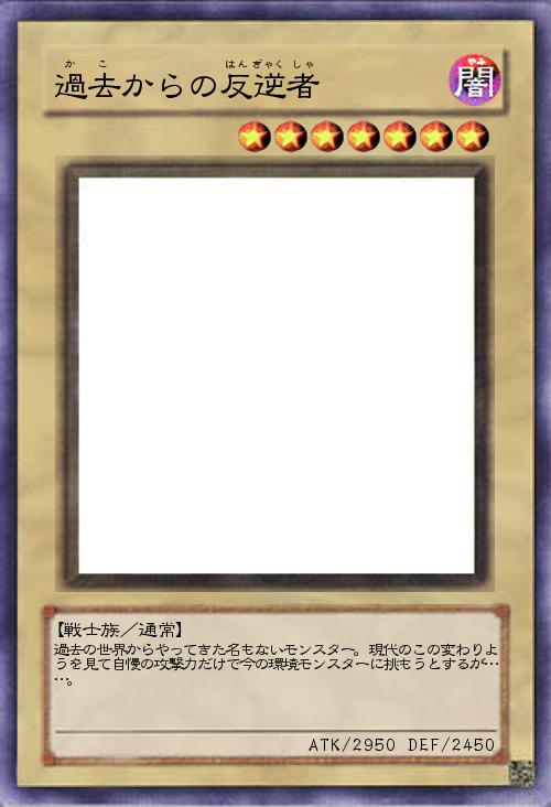 | 過去の世界からやってきた名もないモンスター。現代のこの変わりようを見て自慢の攻撃力だけで今の環境モンスターに挑もうとするが……。 | |||