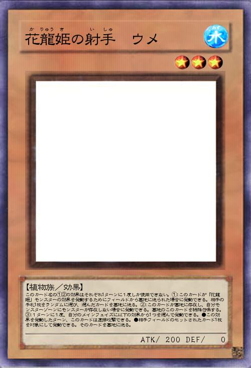 | このカード名の①②の効果はそれぞれ1ターンに1度しか使用できない。①:このカードが「花龍姫」モンスターの効果を発動するためにフィールドから墓地に送られた場合に発動できる。相手の手札1枚をランダムに選び、選んだカードを墓地に送る。②:このカードが墓地に存在し、自分モンスターゾーンにモンスターが存在しない場合に発動できる。墓地のこのカードを特殊召喚する。③:1ターンに1度、自分のメインフェイズに以下の効果から1つを選んで発動できる。●この効果を発動したターン、このカードは直接攻撃できる。●相手フィールドのセットされたカード1枚を対象にして発動できる。そのカードを墓地に送る。 | |||