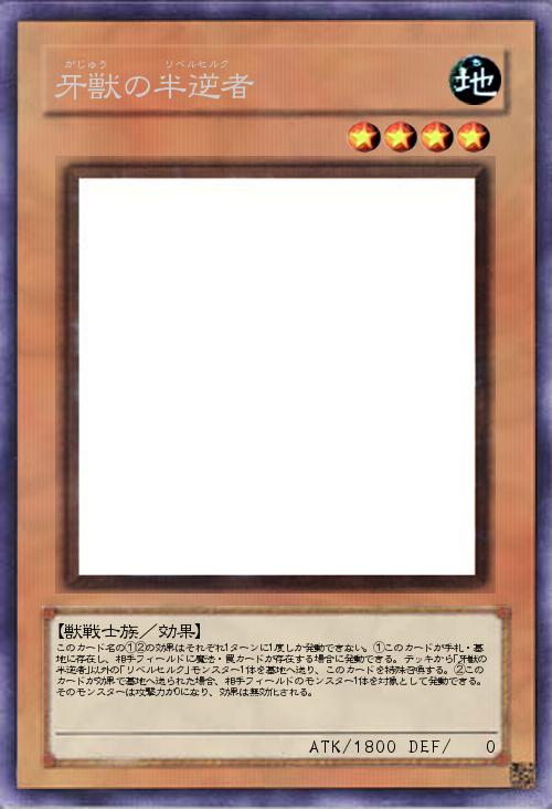 | このカード名の①②の効果はそれぞれ1ターンに1度しか発動できない。①このカードが手札・墓地に存在し、相手フィールドに魔法・罠カードが存在する場合に発動できる。デッキから「牙獣の半逆者」以外の「リベルセルク」モンスター1体を墓地へ送り、このカードを特殊召喚する。②このカードが効果で墓地へ送られた場合、相手フィールドのモンスター1体を対象として発動できる。そのモンスターは攻撃力が0になり、効果は無効化される。 | |||