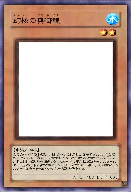 | このカード名の①の効果は1ターンに1度しか発動できない。①:除外されているこのカードが特殊召喚された場合に発動できる。フィールドの「幻核融合ー消滅の空」とカードに記された融合モンスターによって決められた融合素材モンスターをデッキに戻し、その融合モンスター1体を自分のEXデッキから融合召喚する。 | |||