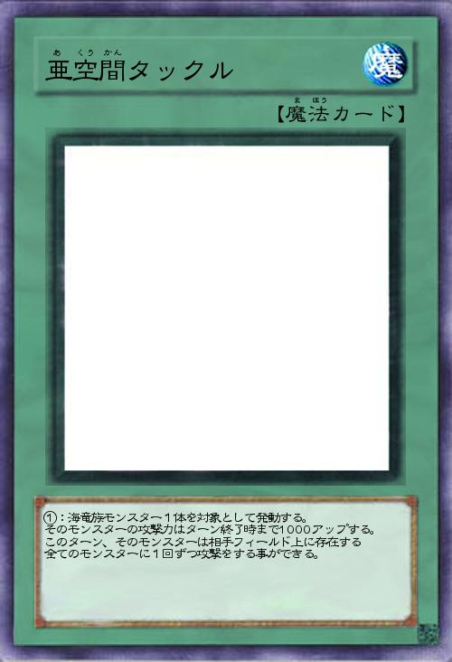 | ①:海竜族モンスター1体を対象として発動する。 そのモンスターの攻撃力はターン終了時まで1000アップする。 このターン、そのモンスターは相手フィールド上に存在する 全てのモンスターに1回ずつ攻撃をする事ができる。 | |||